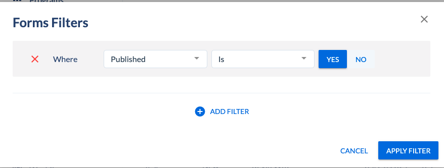 The “published” toggle should be used to control whether or not forms are visible to end users who are submitting proposals. When you do not wish for them to use a form to submit a proposal, you should turn the “published” toggle off.