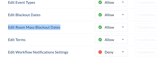 At that point, a user with the “Can Submit Request With Conflicts” permission set to “Allow” would be able to submit a request for that space, but a user with that permission set to “Deny” would not be able to submit a request for that space.