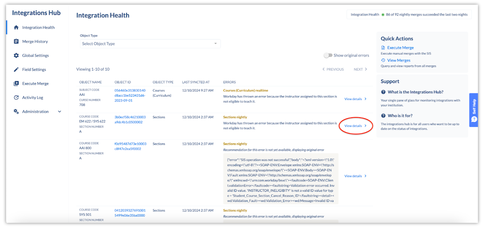This will allow your Coursedog representative to see the exact merge error you’re running into.