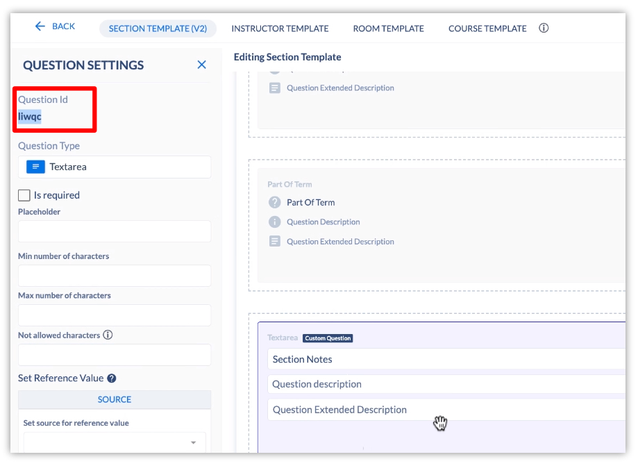 In the “Path” field, input “customFields.” followed by the Question Id for this Custom Field, e.g. customFields.liwqc.