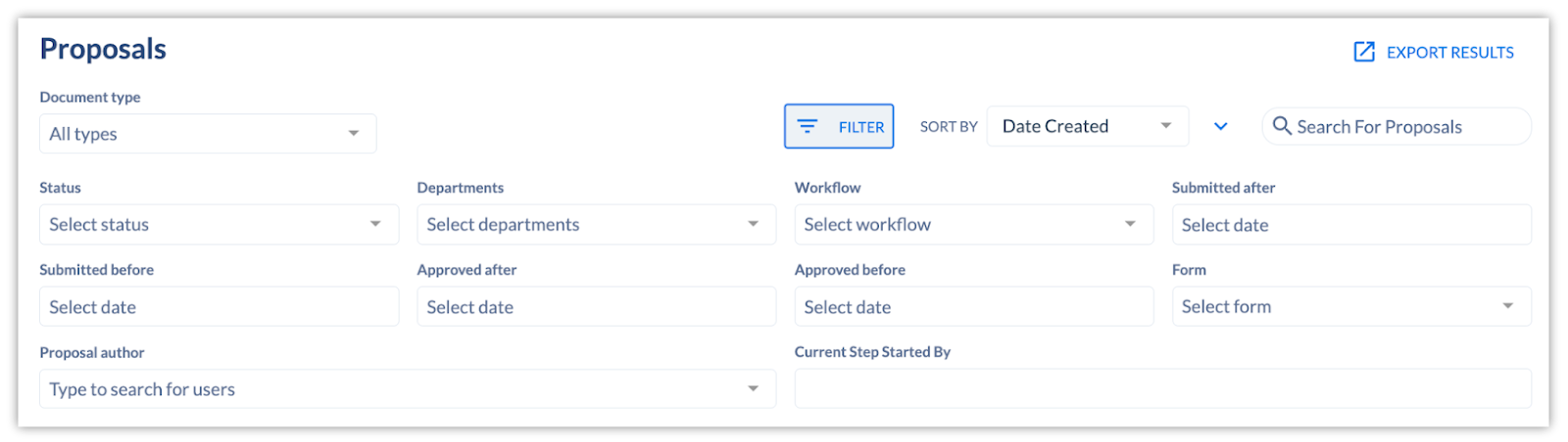 Syllabus supports robust search and filtering for completed syllabi and for proposals.