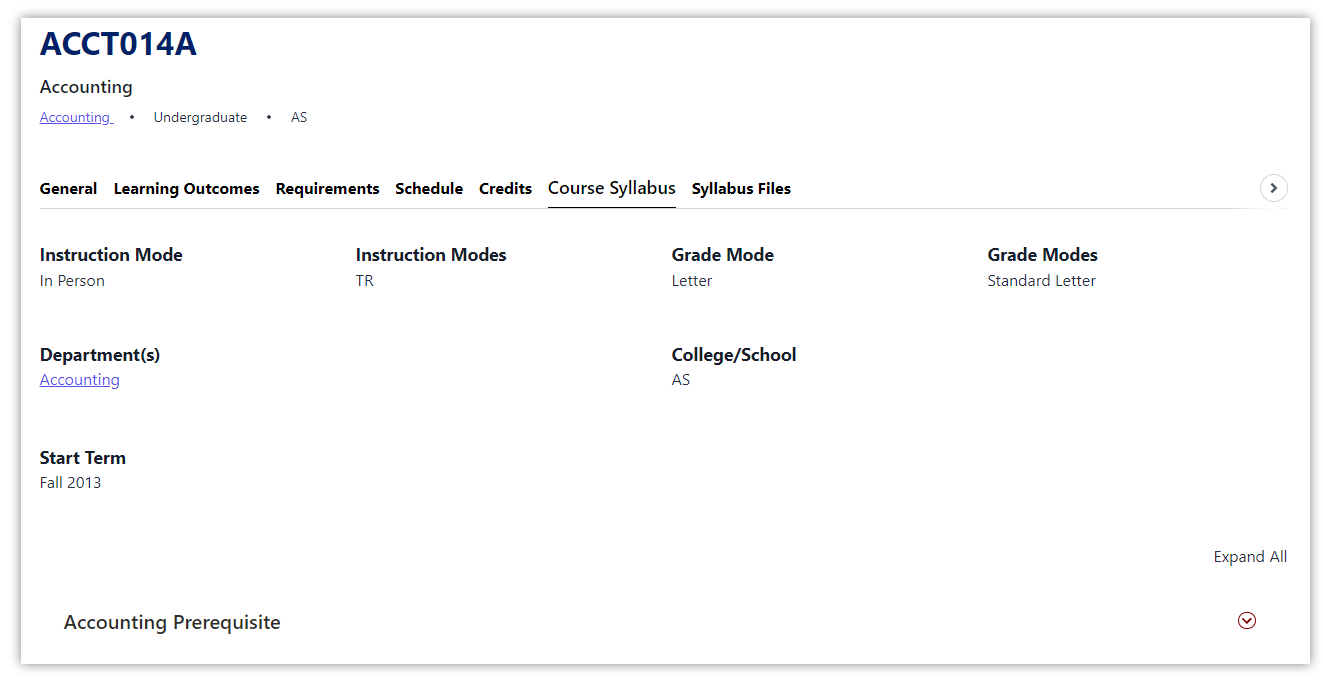 Syllabi data should also be reflected accurately in the public catalog so that active and prospective students and other members of the community have access to accurate information.