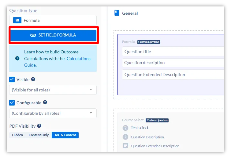 Step 3: Click into the formula field you just added to your template in order to configure its question settings.