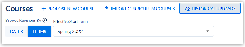You can view past course imports by clicking “Historical Uploads”.